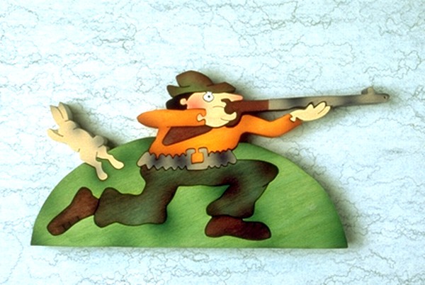 Aus drei cm dickem Sperrholz passgenau gefräst, von Hand in liebevoller Einzelbearbeitung in Spritztechnik coloriert, sind diese Puzzles kleine Kunstwerke, die einfach witzig sind und zu gefallen wissen. Als Spielzeug rufen Sie beim Nachwuchs große Begeisterung hervor, als Sammelobjekt stehen sie bei den Vätern und den Junggebliebenen hoch im Kurs.