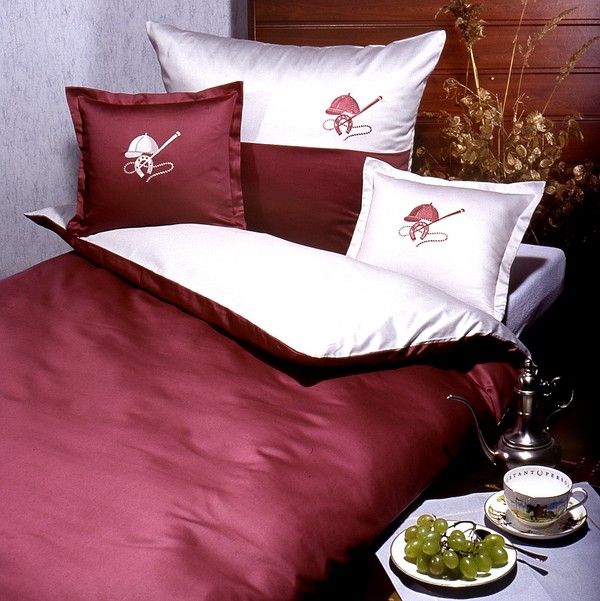 B2 Reiter-Bettwäschegarnitur ST. TROPEZ silber/burgund "Kappe/Hufeisen"