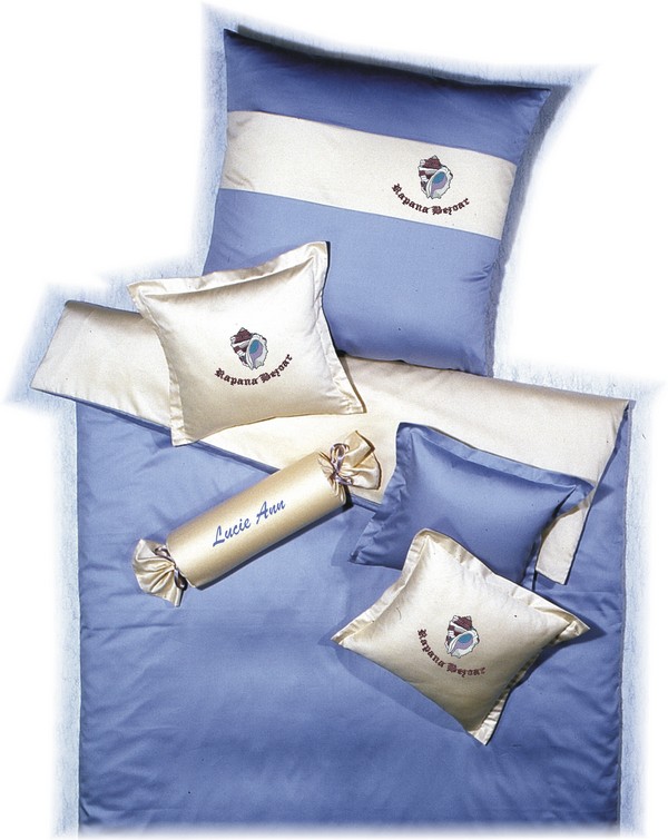 Bestehend aus Bettbezug 135x200 und Kissenbezug 80x80 incl. Stickerei "Rapana Bezoar" auf großem Kissen ( ohne Zierkissen und Nackenrolle )