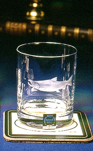 Whiskyglas aus Kristallglas, Motiv handgraviert