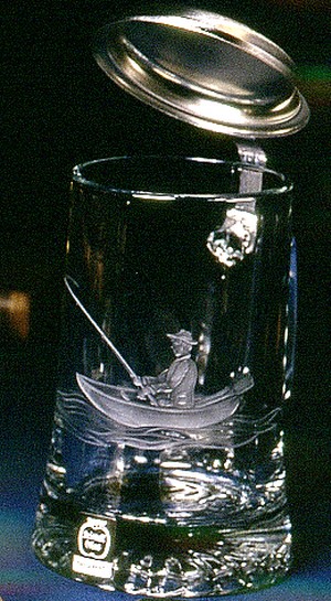 Bierkrug ANGELN mit Zinndeckel mit Motiv ANGLER MIT BOOT