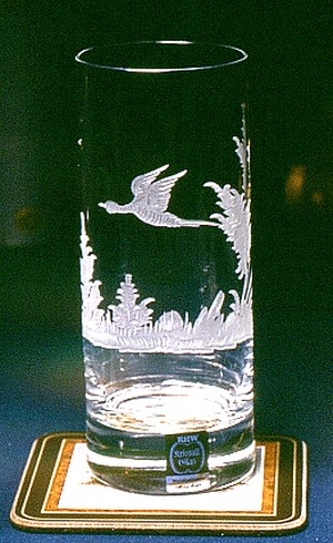 Longdrinkglas aus Kristallglas, Motiv handgraviert