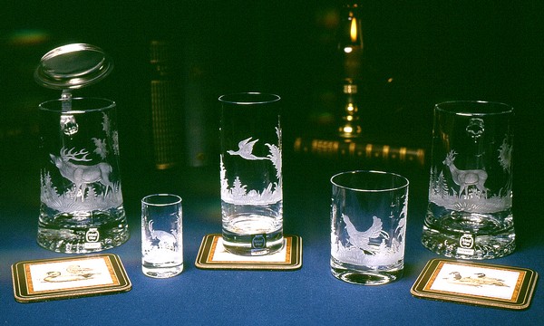 Handgravierte Kristallgläser mit Jagd-Motiven: Ein wertvolles Geschenk für viele Gelegenheiten.
