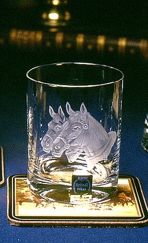 Whiskyglas aus Kristallglas, Motiv handgraviert