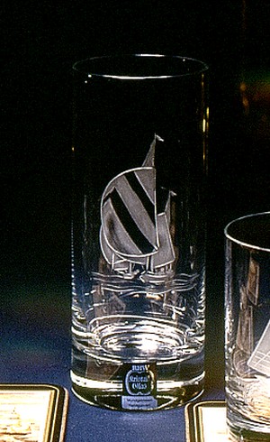 Longdrinkglas aus Kristallglas, Motiv handgraviert