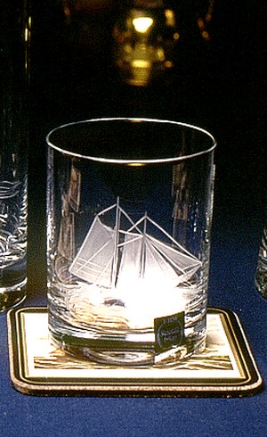 Whiskyglas aus Kristallglas, Motiv handgraviert